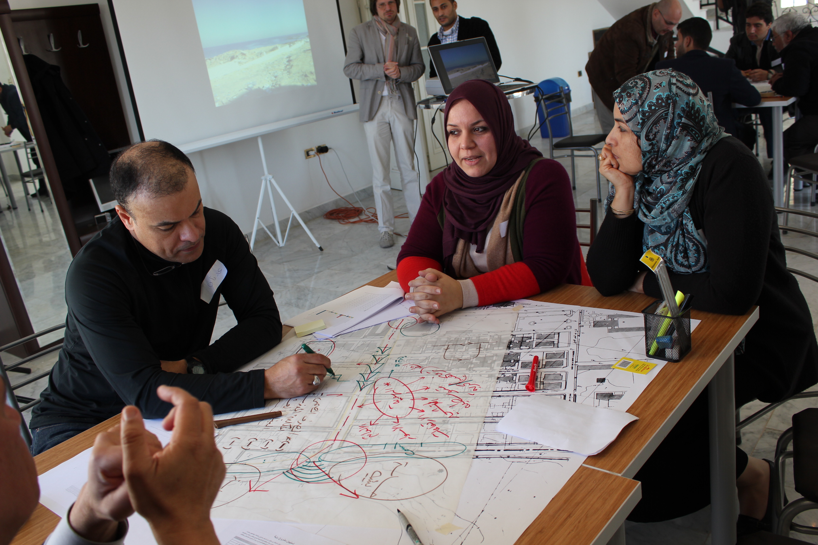 “Roghata” is Arabic for “Group Consultation”. The Roghata Community Urban Design Charettes program is designed to give people a say in how their communities are developed, and to promote ownership in Libya’s new public spaces. The pilot program was successfully implemented in the Hay Al Andulus, a beachfront community in Tripoli Libya on January 5th, 2014.